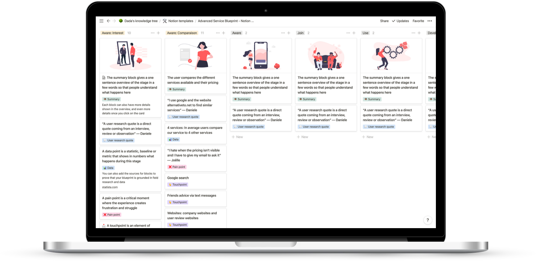 Create a complete Service Blueprint with automated analysis features directly in Notion.