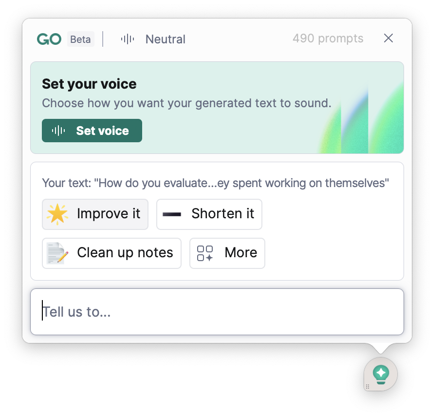 With either Notion AI or Grammarly Go, I then transform the rough transcription into something that sounds grammatically correct.