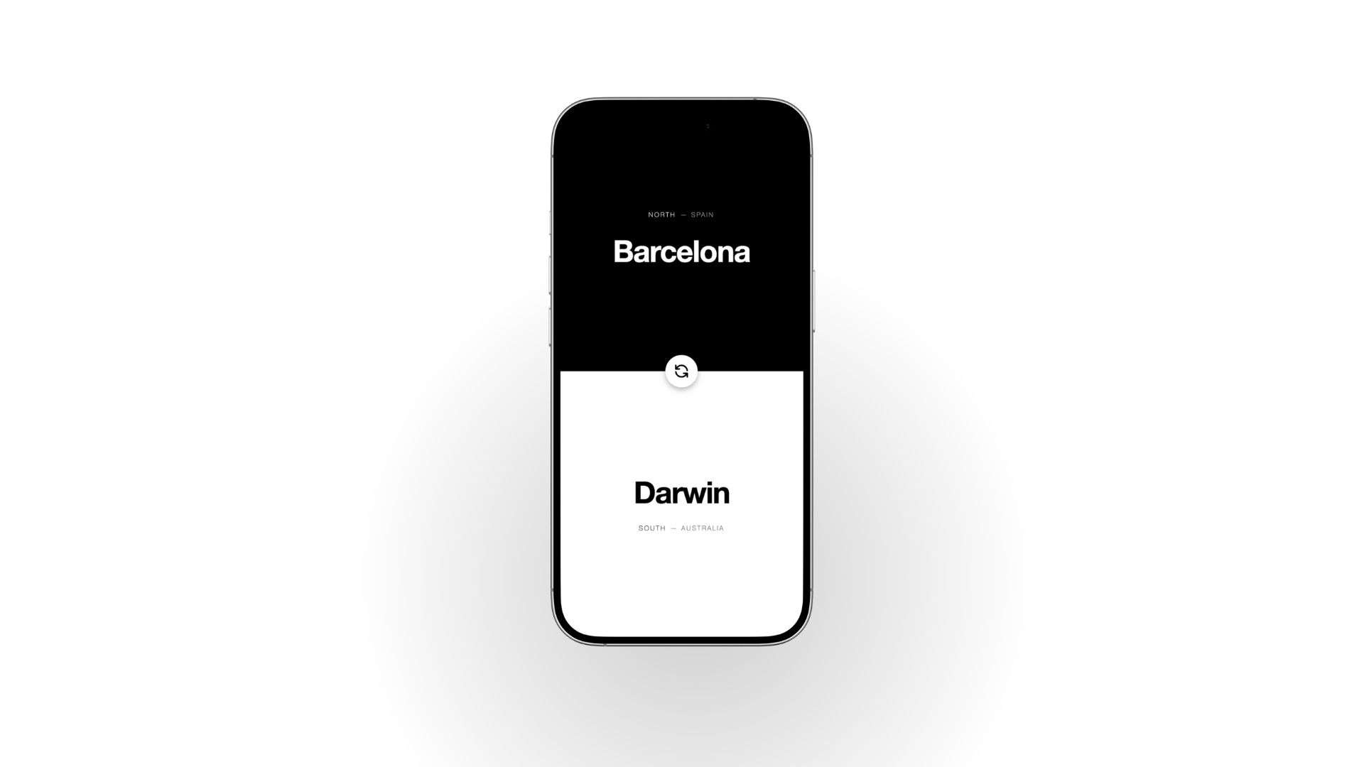 So I made a tiny app that when I open it gives me two random city names, and their country. On in the northern hemisphere and one in the southern hemisphere.