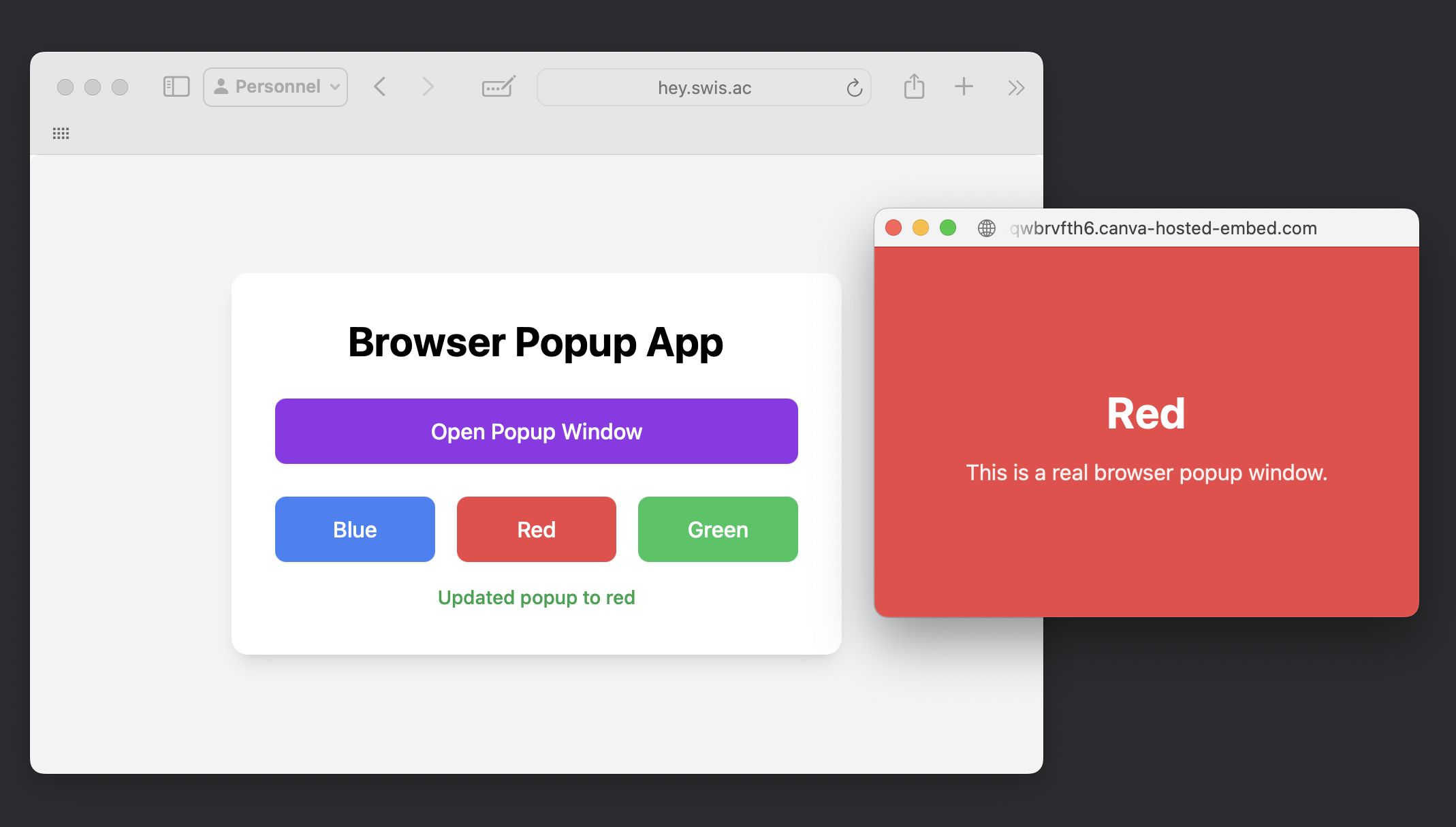 A prototype built in Canva Code to check if I can make it open a pop-up and then change the content of the pop from the main window. It worked!