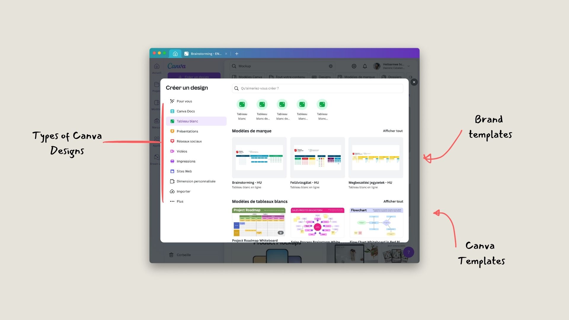 When you create a new Canva design, Canva proposes automatically a set of template for each type of Canva Design (presentation, video, whiteboard, etc). So if you want that people stay on brand it's important that for each type of Canva Design you have at least one template, otherwise the first thing that people will see are the creative templates from Canva that might be very off brand.