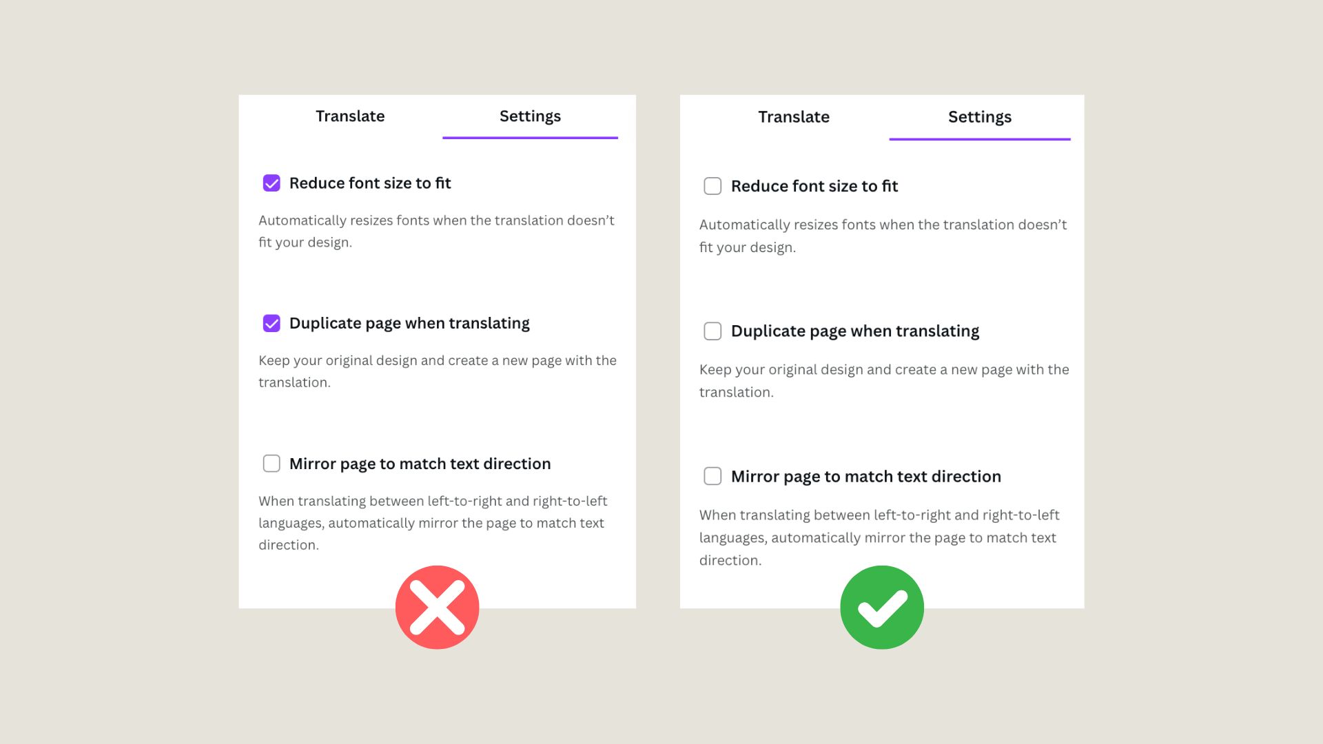 There are just two settings to ensure that the translation takes less work and doesn't break your design: