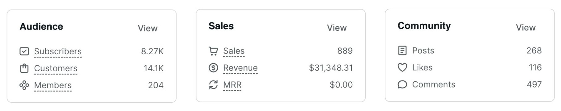 If you are curious and ask yourself: "Okay but that's just one course! How are things going overall for the Swiss Innovation Academy project?". Here are a few numbers from my Podia dashboard (the tool I use to run this website).