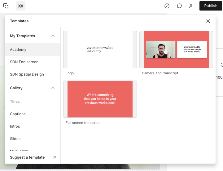 With the template feature, I can very quickly change the layout of a specific moment in the video.