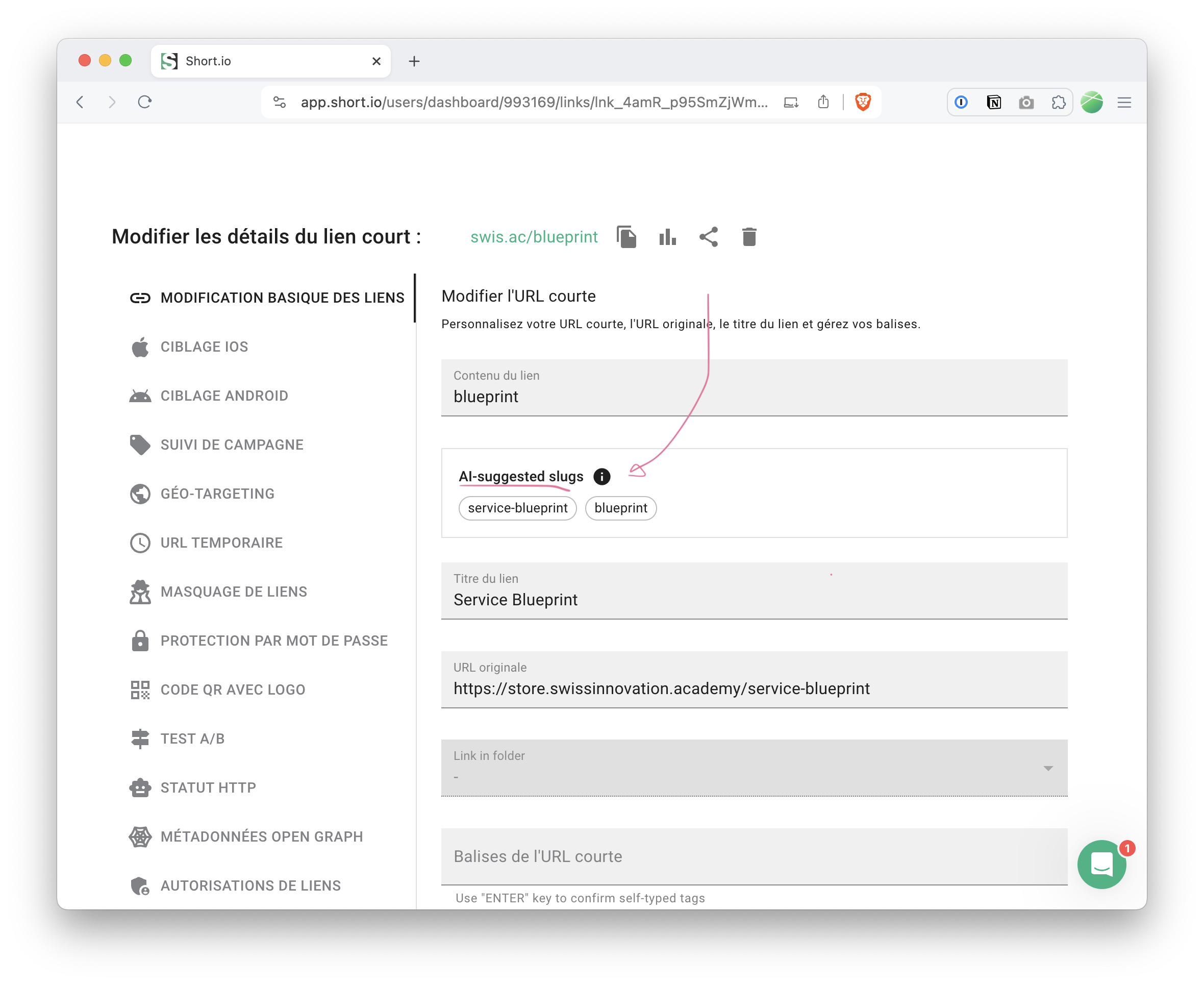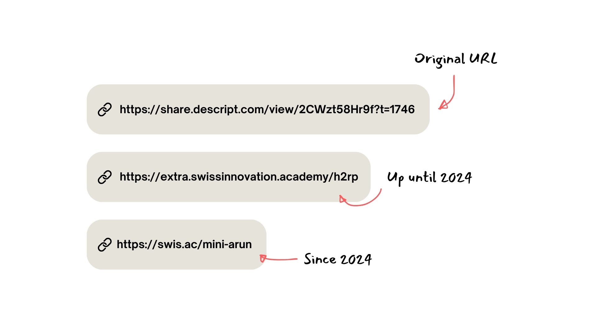 Up until now, I've used the subdomain extra.swissinnovation.academy to make it a more branded experience. Until now, I've let the link shortener I use automatically generate a short random link, for example, extra.swissinnovation.academy/s2ry.