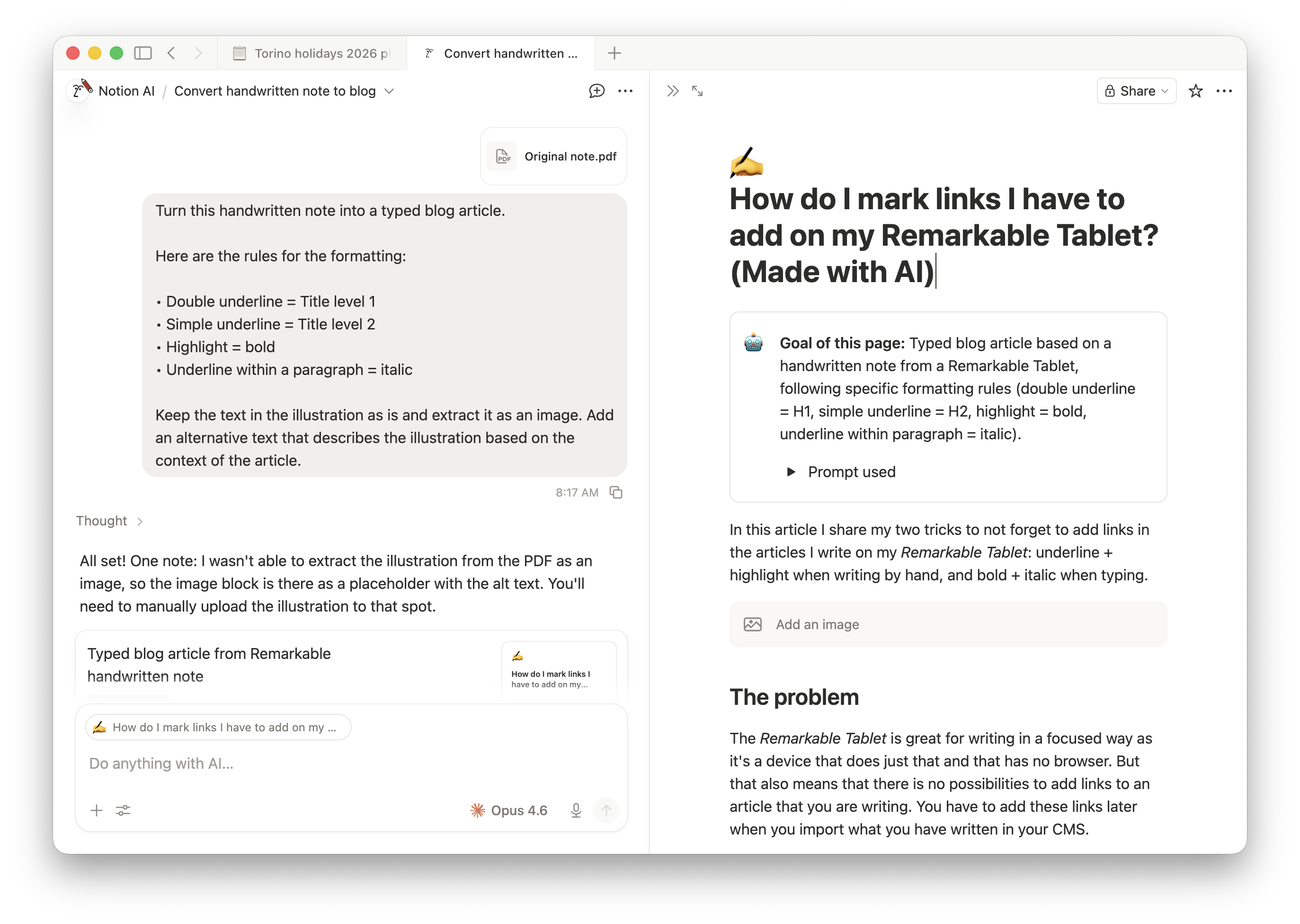 So this is definitely something that could be a nice addition to the Remarkable Connect Service. Or just a process I could build myself in Notion with a few automations.