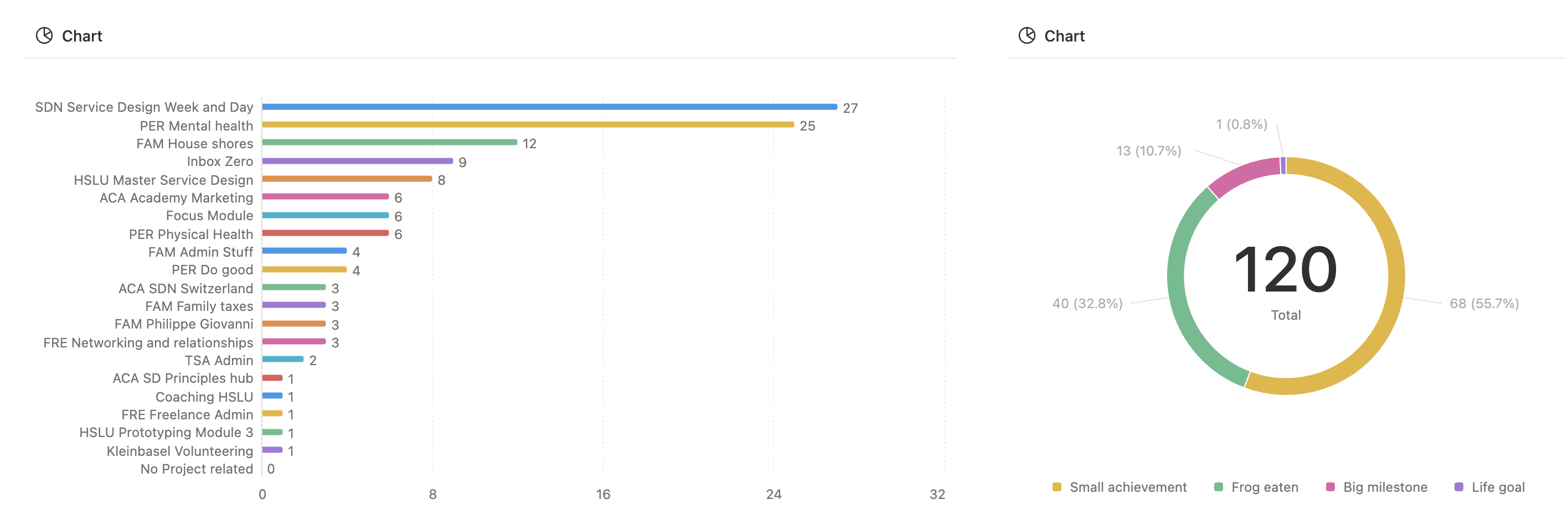 The charts are just another addition to my gratitude and tiny achievements journals that are more "qualitiative" with pictures and words instead of just numbers. Having now also a few numbers and charts is a nice addition.