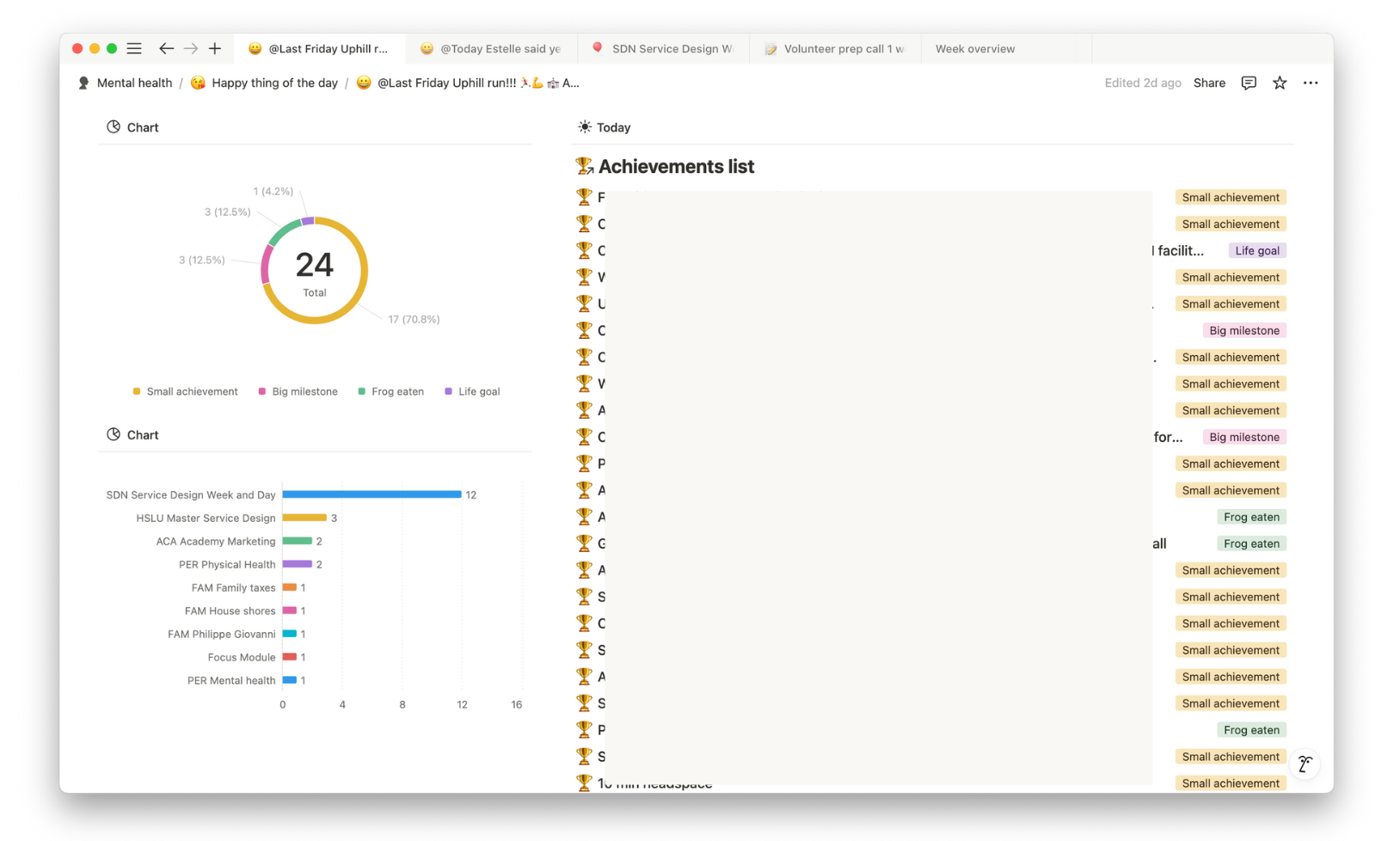 As a geek I always play with how I'm capturing these tiny notes, and lately I've been bringing them back to my notion database of tiny achievements.