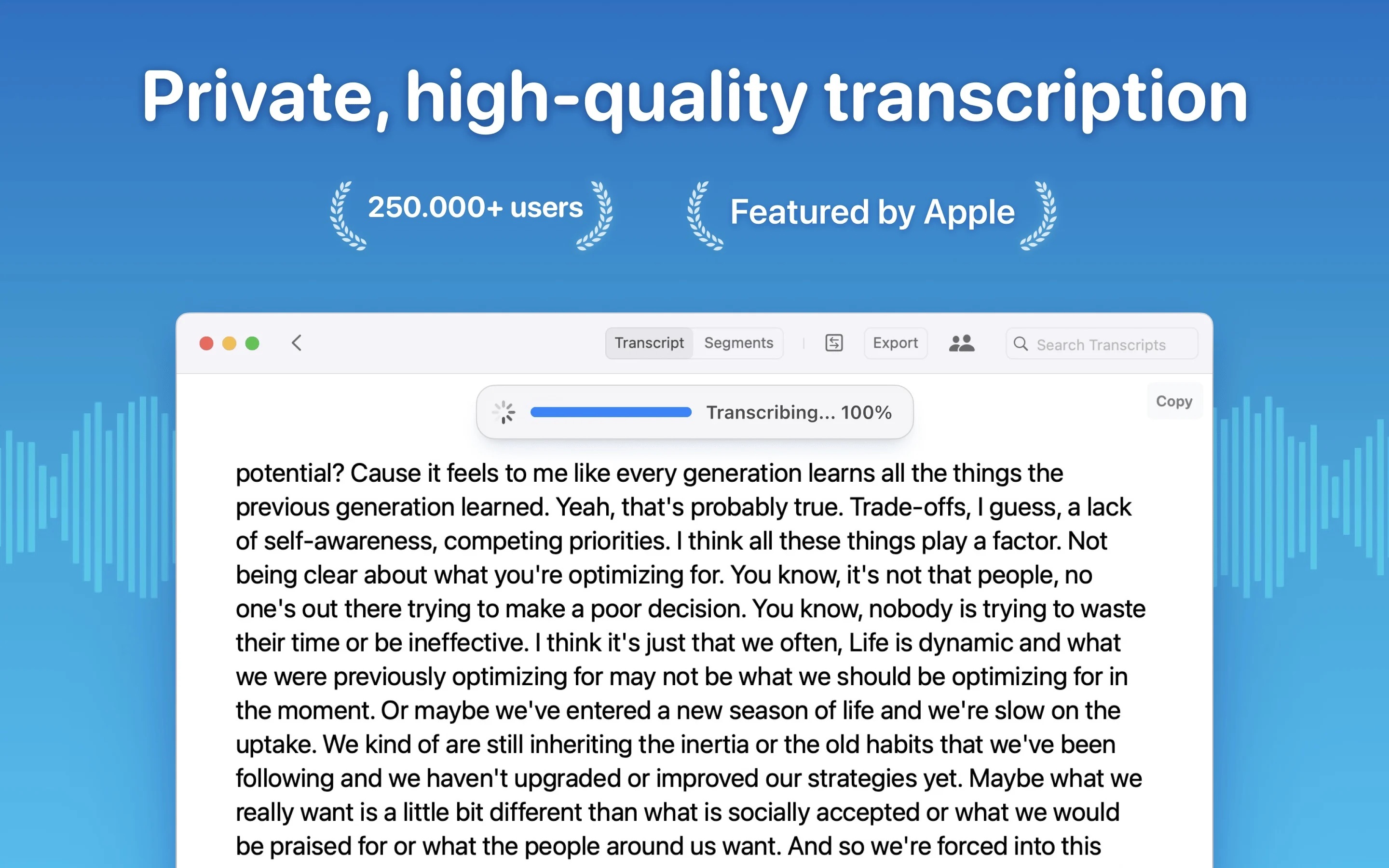 MacWhisper let's you use OpenAI Whisper model for transcription directly on your mac, without any data passing by the servers of OpenAI.