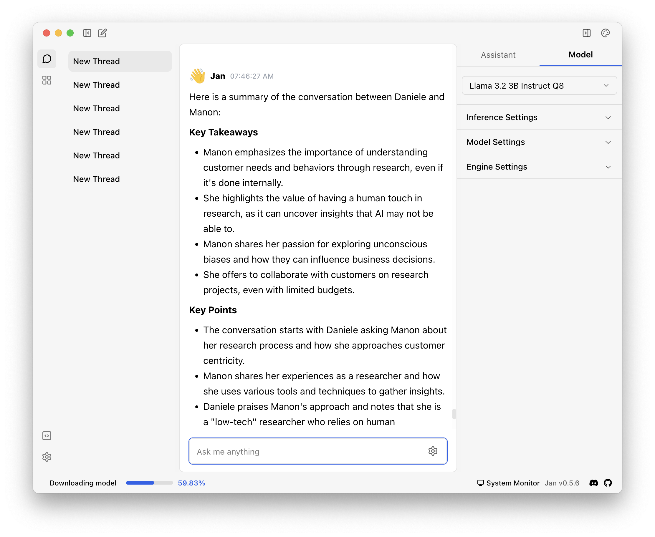 Jan.ai is a ChatGPT alternative that can work without internet connexion or without sending any data to anyone.