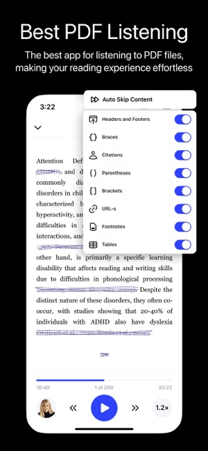 Skip what's in parenthesis and the citations: this skips the academic references that you still see, but don't hear