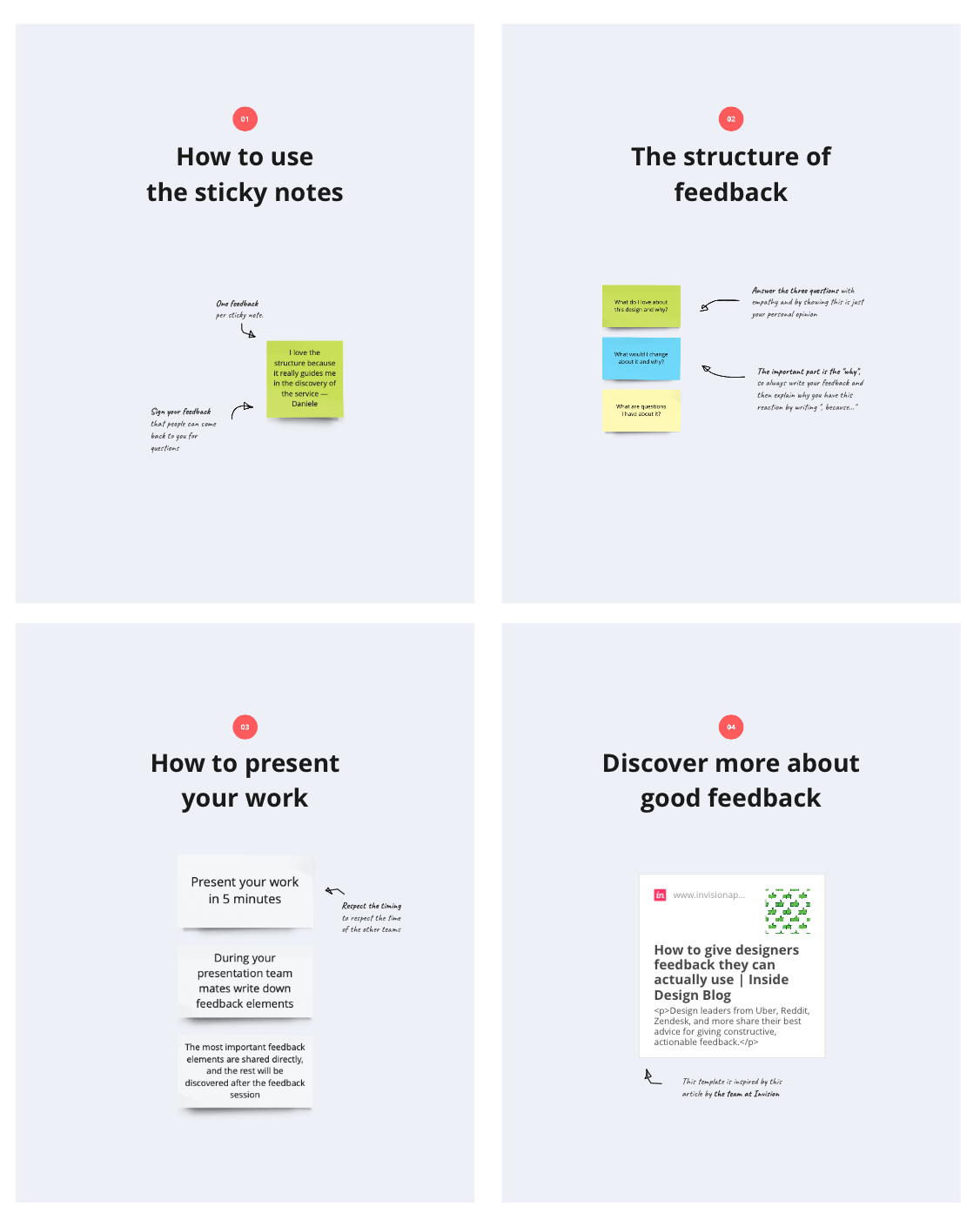 During remote feedback sessions there are key feedback pieces that need to be shared live. But others could just be written down with the signature of the author. If the team that presented has further question it can always go back to the original author, but most of the time, the written feedback is already enough and therefore it makes the meeting shorter.