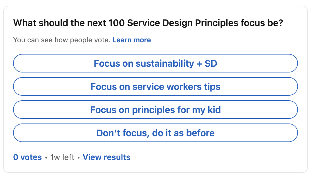 I've promised myself I'll write at least 5 books on the topic of service design principles, that makes a total of 500 principles. In the next month I'll publish number 4, and after that it would be the last to keep my personal promise.