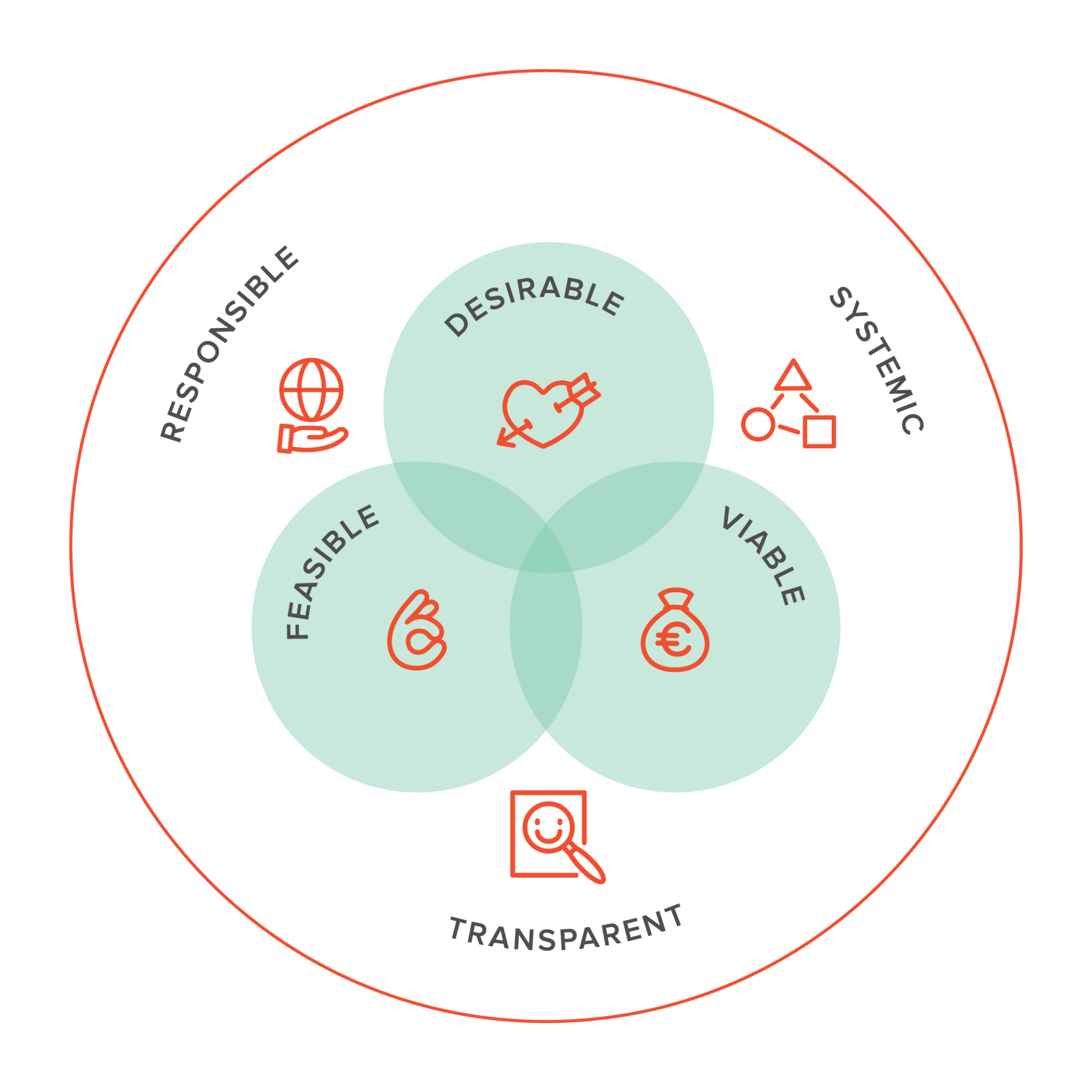 The principle, in short For ages, we've been focused on desirability, feasibility and feasibility, which leads us to where we are today.