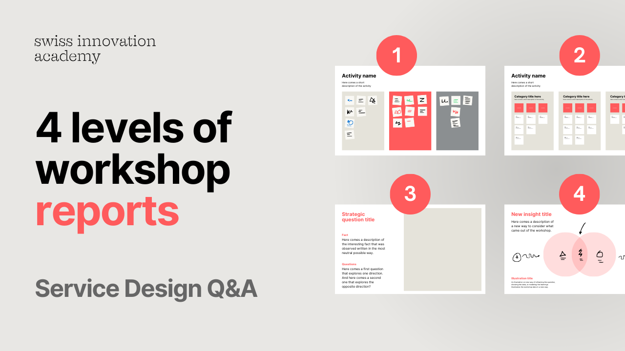 I've noticed that there are 4 levels of workshop reports that I make. These go from super quick to make without any additional information, to very long to make with additional strategic insights.