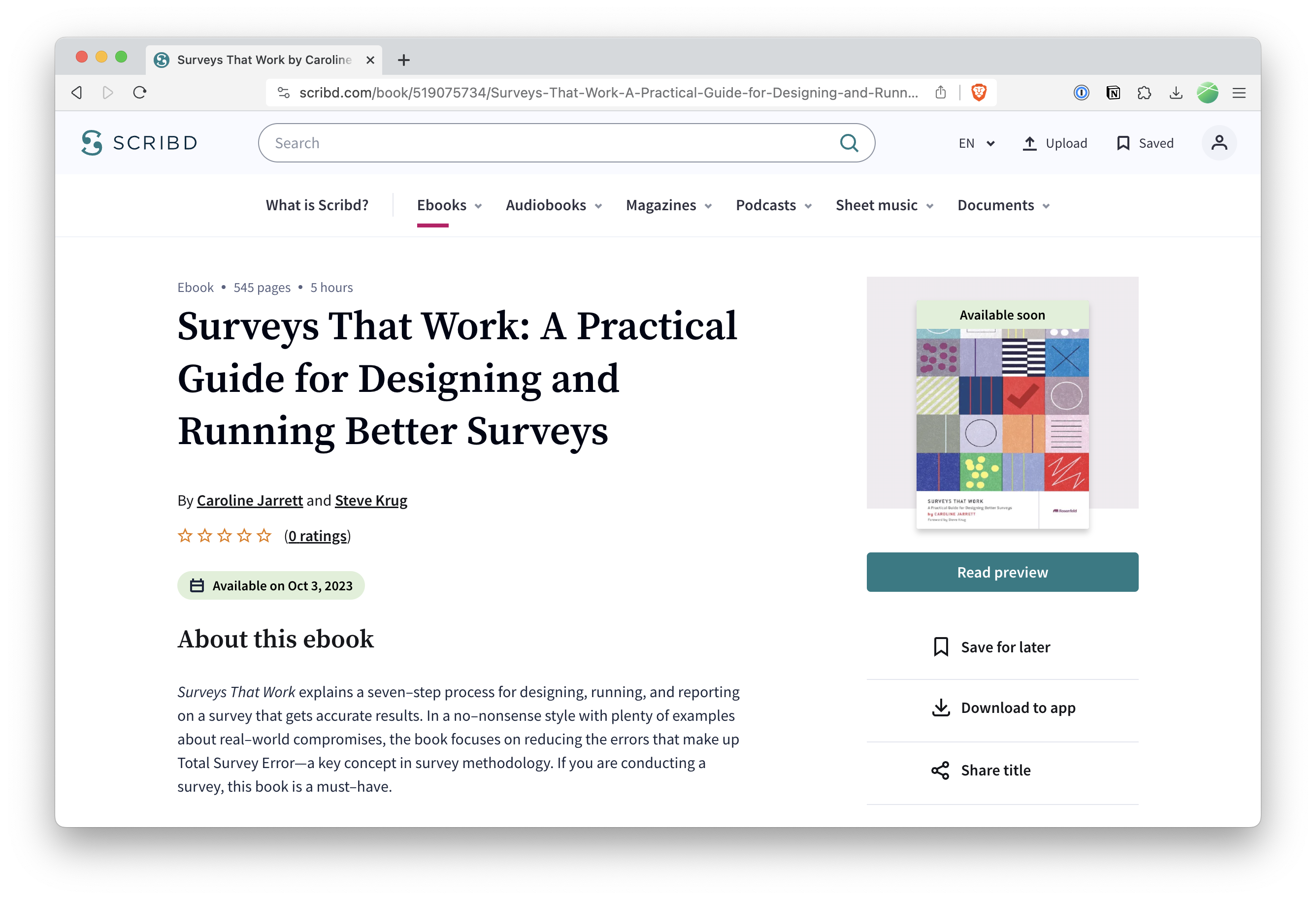 You don't find all the books in there, but for example, you can read many of the books from Rosenfeld Media (which are really, really good) in Scribd.
