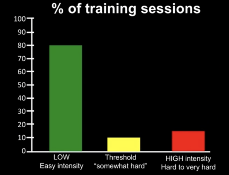 80% of low intensity: The goal is not to burn out but to improve over time.