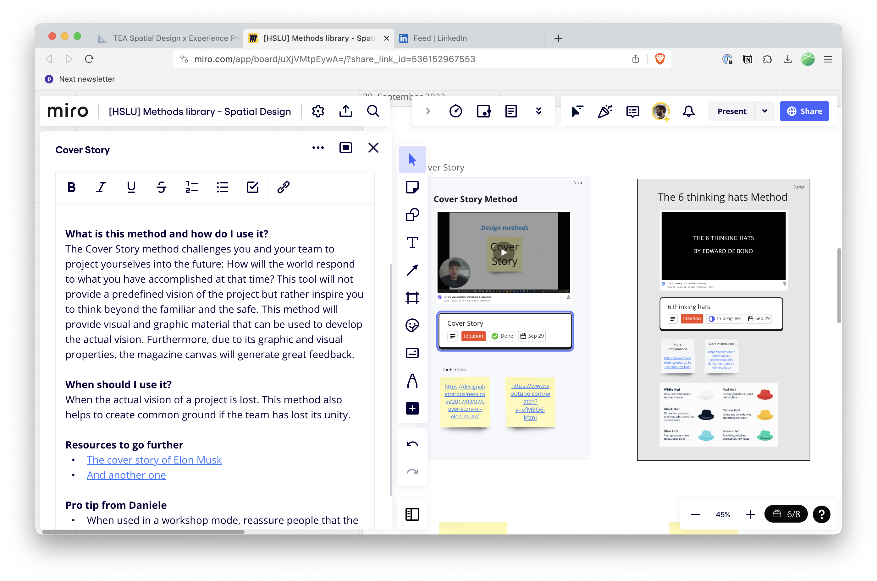 Instead, I've asked the learners to learn, teach and try out the methods and share them through little Loom and Descript videos that we're adding to a Miro board.