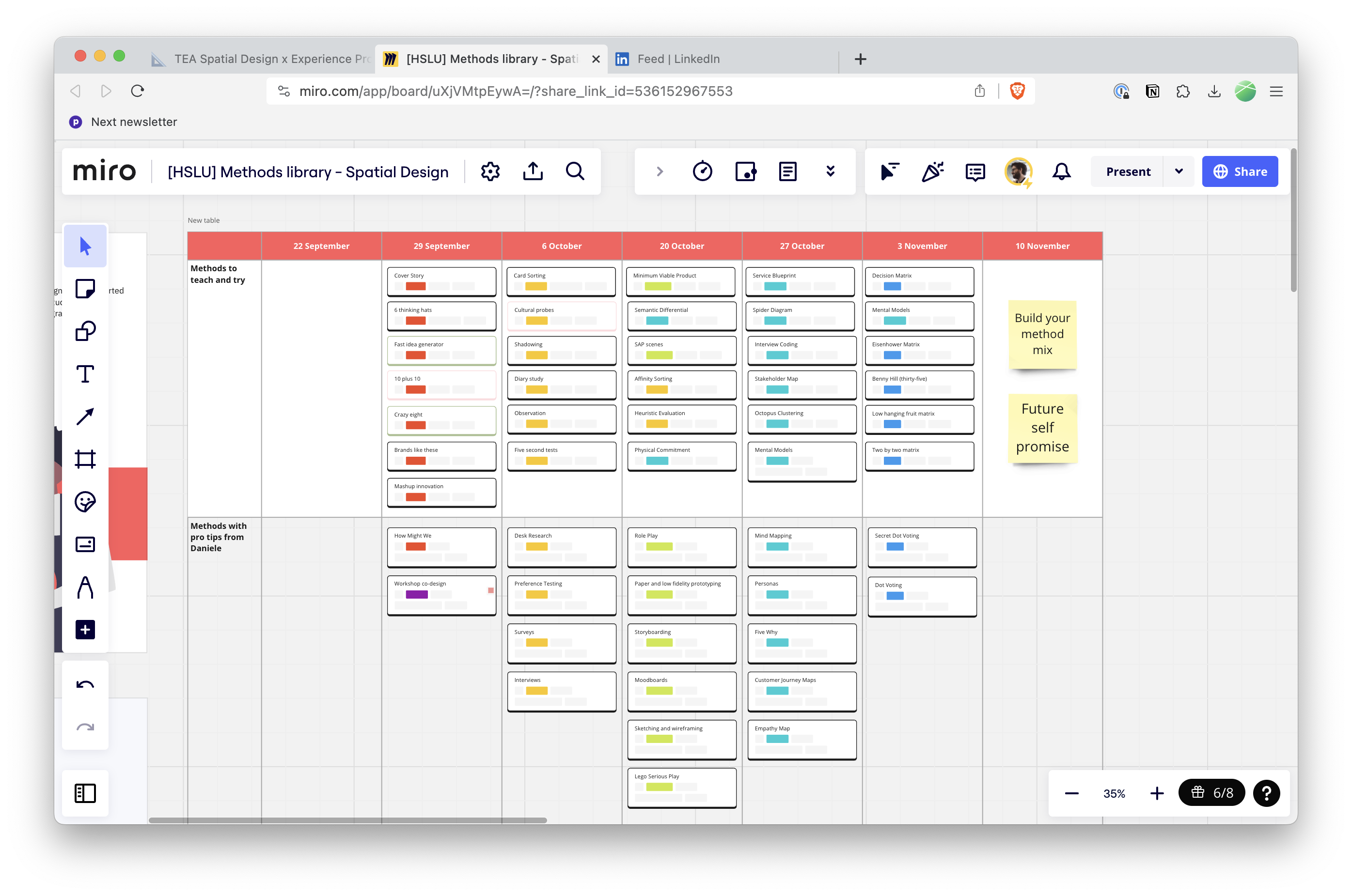 Using Miro makes it easy to make a visual course schedule, showing clearly: